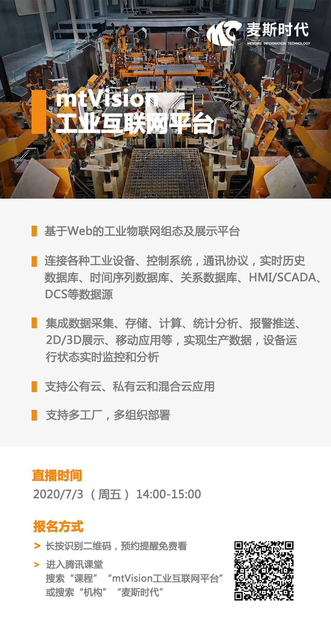 mtVision可部署于企業(yè)私有云或安全的公有云,滿足物聯(lián)網(wǎng)及移動(dòng)辦公的需求,隨時(shí)隨地掌控一切,幫助企業(yè)快速實(shí)現(xiàn)生產(chǎn)現(xiàn)場(chǎng)數(shù)據(jù)的云端化,及時(shí)準(zhǔn)確地掌握生產(chǎn)運(yùn)行狀態(tài)、加快決策。