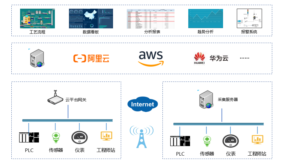 數(shù)據(jù)采集:支持Linux及Windows操作系統(tǒng),可以軟件方式安裝在PC機、服務(wù)器,也可嵌入到通訊設(shè)備盒子中??赡苤苯訌脑O(shè)備、PLC系統(tǒng)、DCS系統(tǒng)、工業(yè)SCADA系統(tǒng),OPC Server等中采集數(shù)據(jù),并向上層工業(yè)數(shù)據(jù)庫或者云平臺上傳,可以所采集的數(shù)據(jù)基礎(chǔ)上,實現(xiàn)協(xié)議轉(zhuǎn)換及必要的邏輯運算,以達到優(yōu)化數(shù)據(jù)傳輸目的。