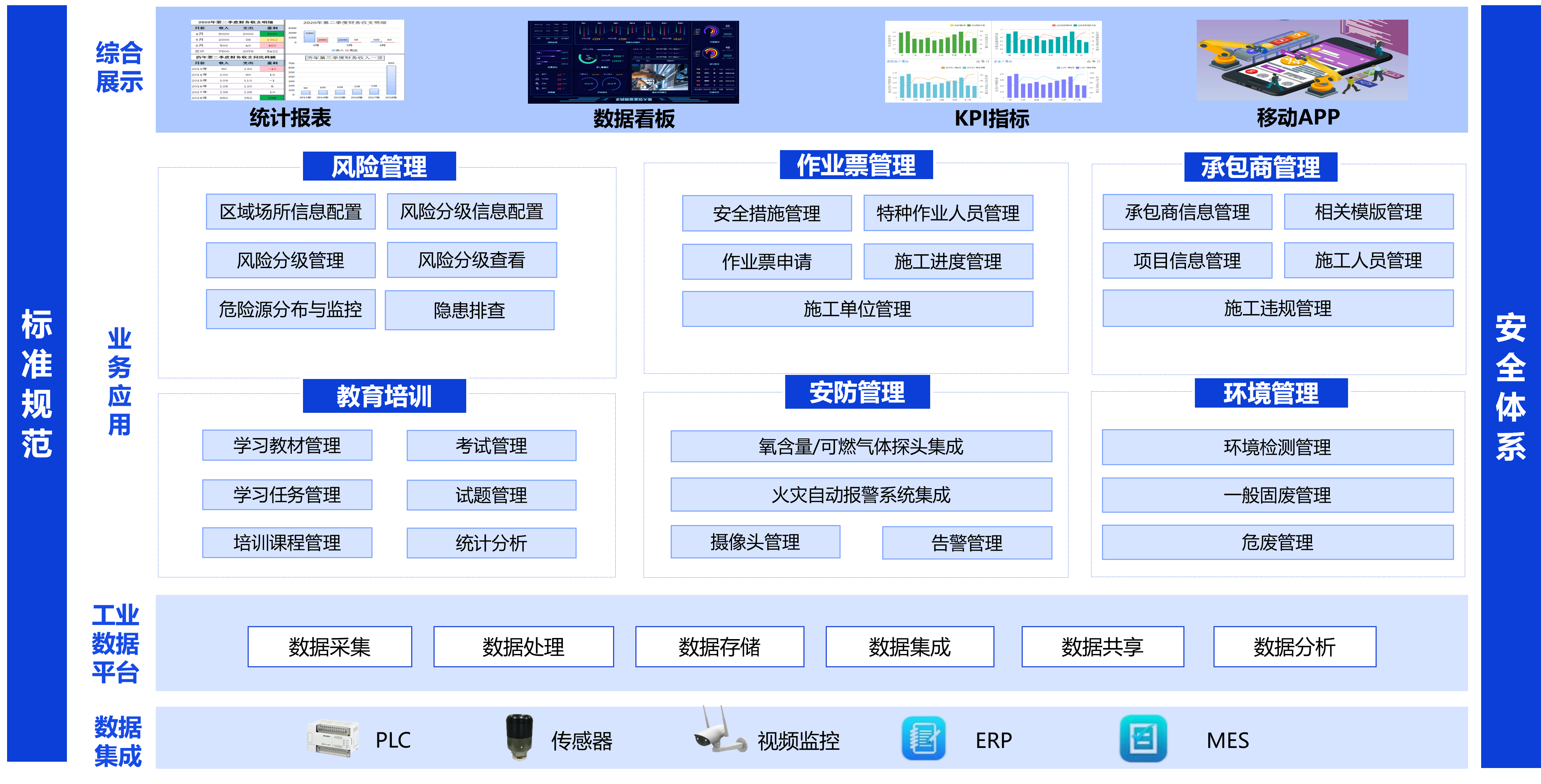 建立企業(yè)安環(huán)管理標準化體系與管理流程,將信息化技術(shù)與智能化手段結(jié)合,全面監(jiān)測、預防企業(yè)安環(huán)隱患、風險等,實現(xiàn)事前可預知、事中可管控、事后可追溯的全流程管理,提升企業(yè)安環(huán)管理意識、安環(huán)管理能力與手段,為企業(yè)安環(huán)管理持續(xù)賦能。
