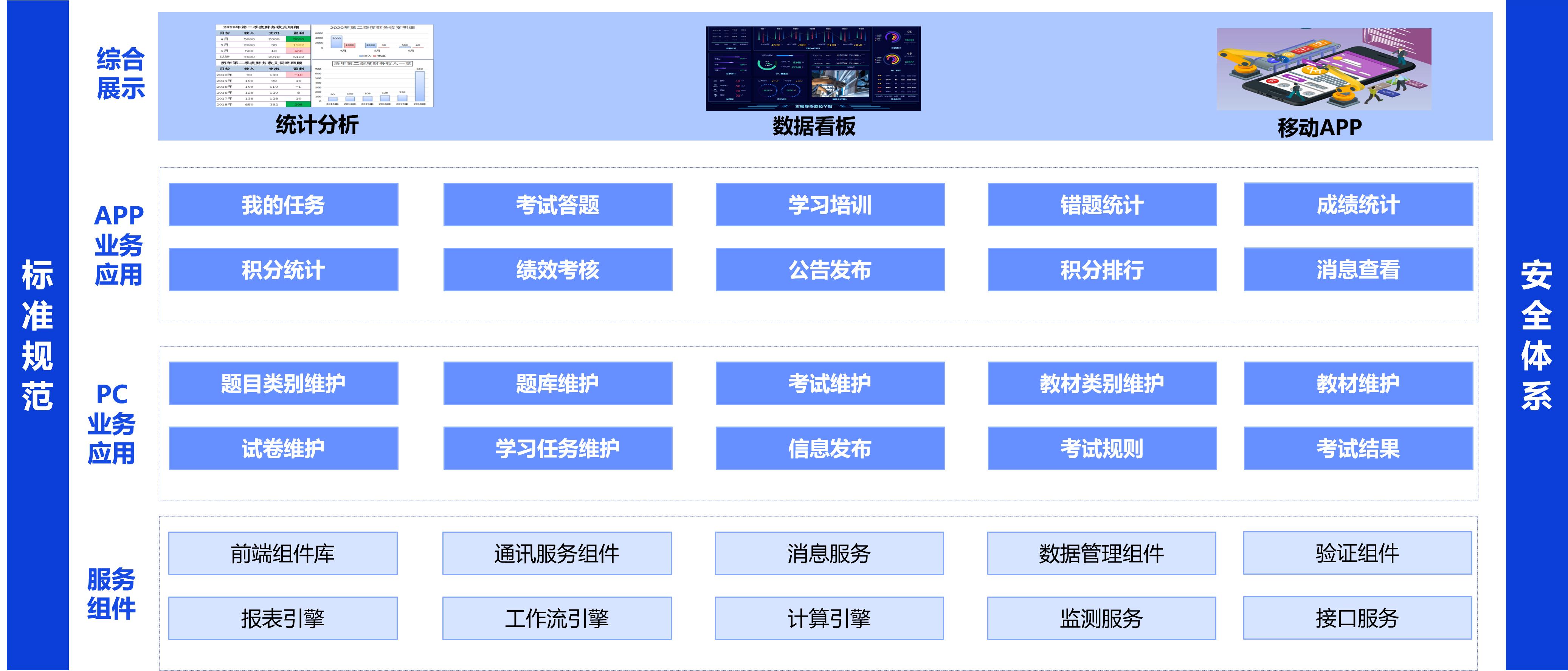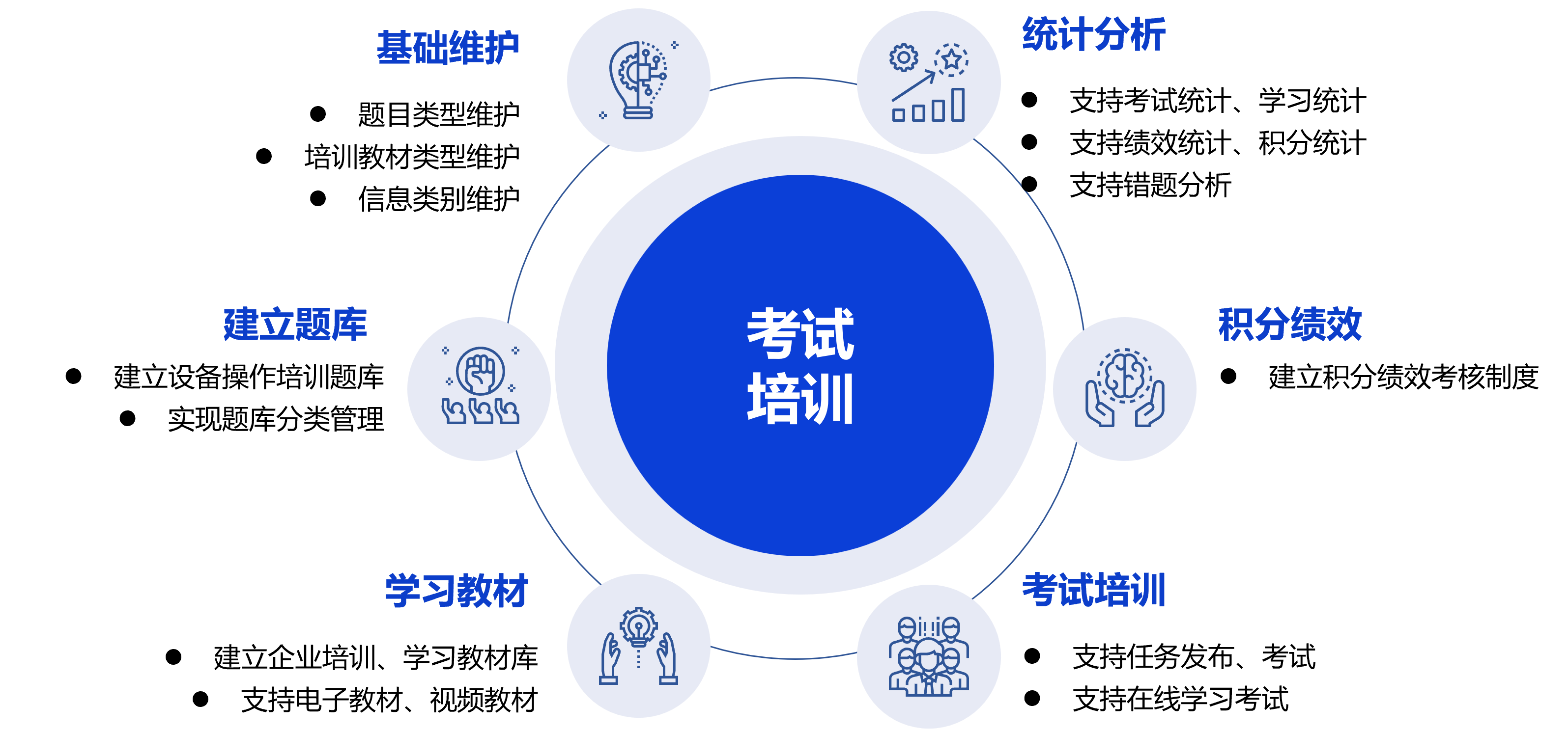 考試培訓學習系統(tǒng)支持題庫建立、系統(tǒng)組題、在線考試、在線學習、績效考核等功能,可助力企提升企業(yè)員工專業(yè)素養(yǎng)與工作能力。