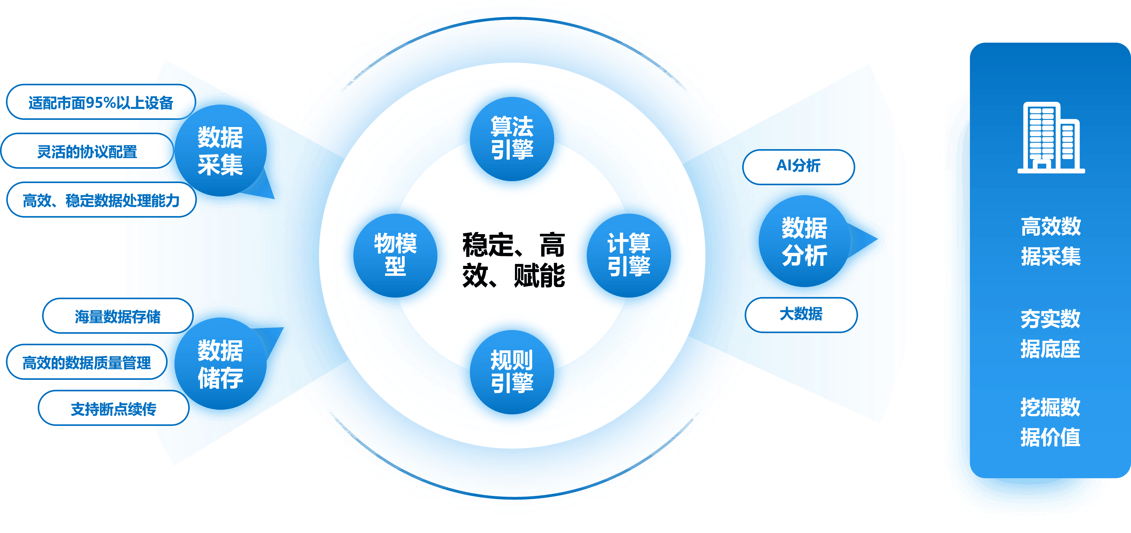 搭建企業(yè)物聯(lián)網(wǎng)平臺,可以幫助企業(yè)構(gòu)建統(tǒng)一數(shù)據(jù)底座,高效、規(guī)范、科學的進行企業(yè)數(shù)據(jù)采集、管理,提升企業(yè)數(shù)據(jù)利用率、數(shù)據(jù)質(zhì)量;平臺覆蓋市面95%以上常見協(xié)議,方便企業(yè)今后進行數(shù)據(jù)擴展及外部數(shù)據(jù)接入,為企業(yè)的生產(chǎn)、設(shè)備、能源、分析、決策賦能。